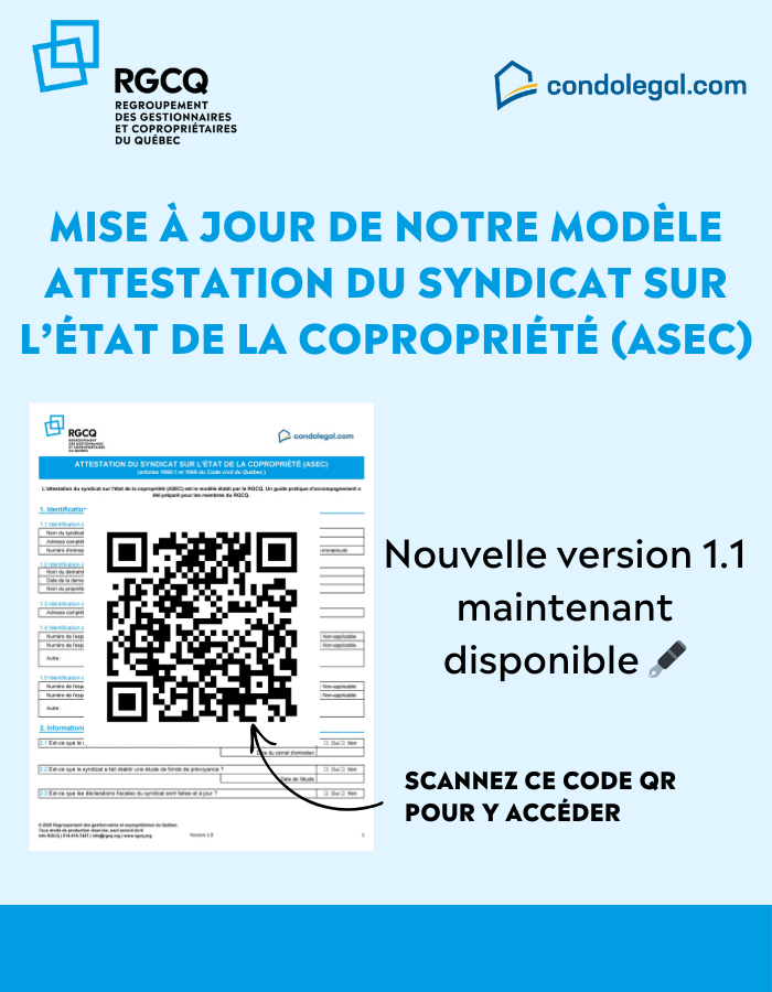 En plus de ces outils, notre page spéciale sur la Loi 16 regroupe de la documentation essentielle sur le carnet d’entretien et le fonds de prévoyance, afin d’aider les syndicats à mieux comprendre leurs obligations.