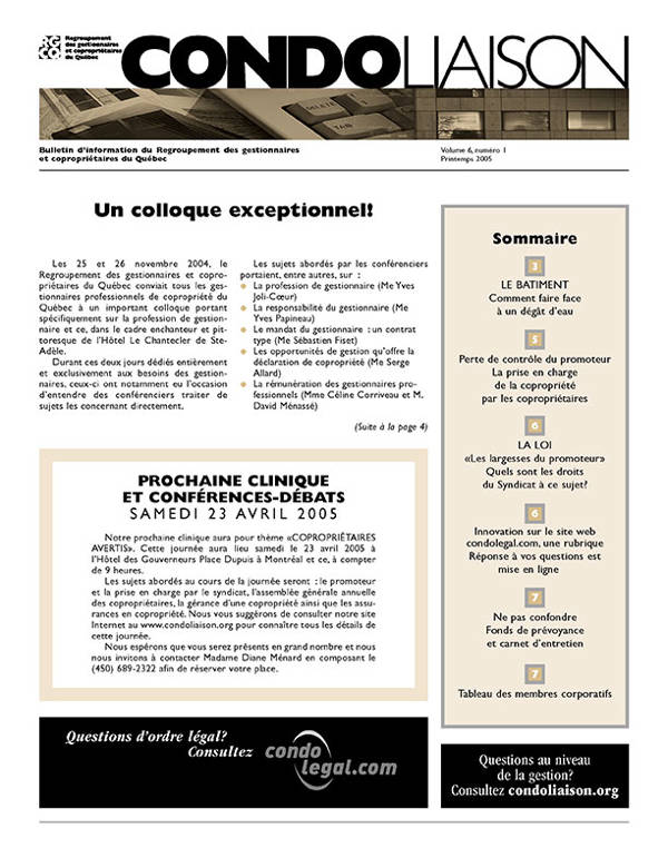 Condoliaison du printemps 2005 Vol. 06-1