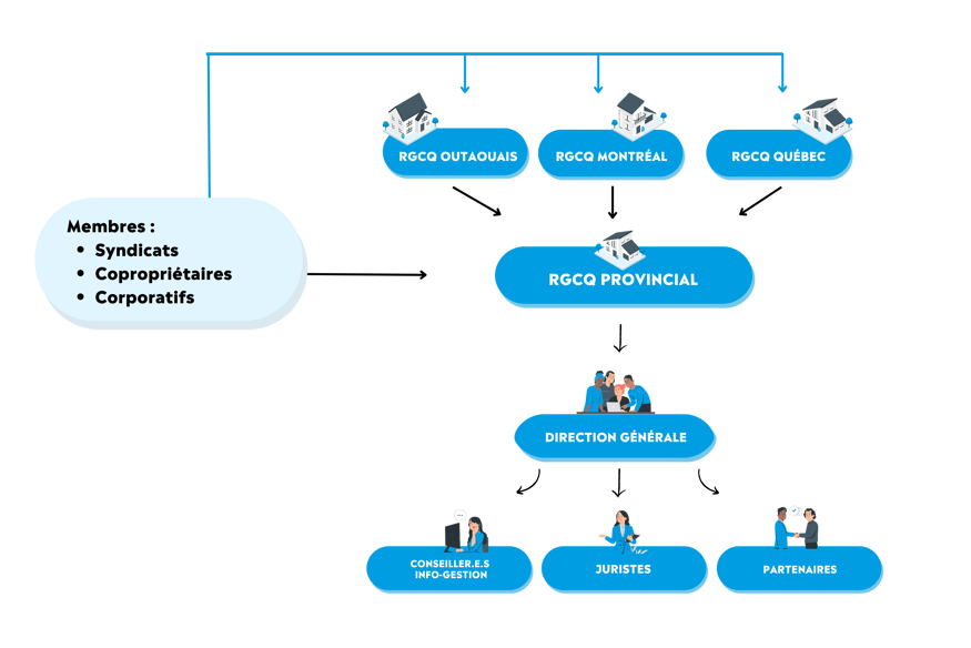 - Faire pression sur les instances municipales et provinciales pour que la copropriété soit reconnue comme un pilier essentiel du développement immobilier résidentiel.